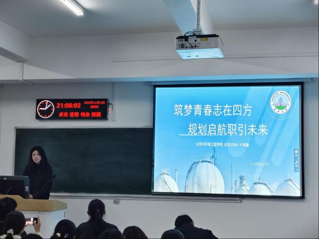 专业讲座和职业发展规划课程中所学的知识,全面且深入地展示了个人的职业目标、成长规划路径、实践行动方案、应对挑战的策略以及灵活的动态调整机制。应化32504班的计鸿鑫同学畅谈了她大学四年的学习与实践计划,展现了化工新人筑梦未来的蓬勃朝气。