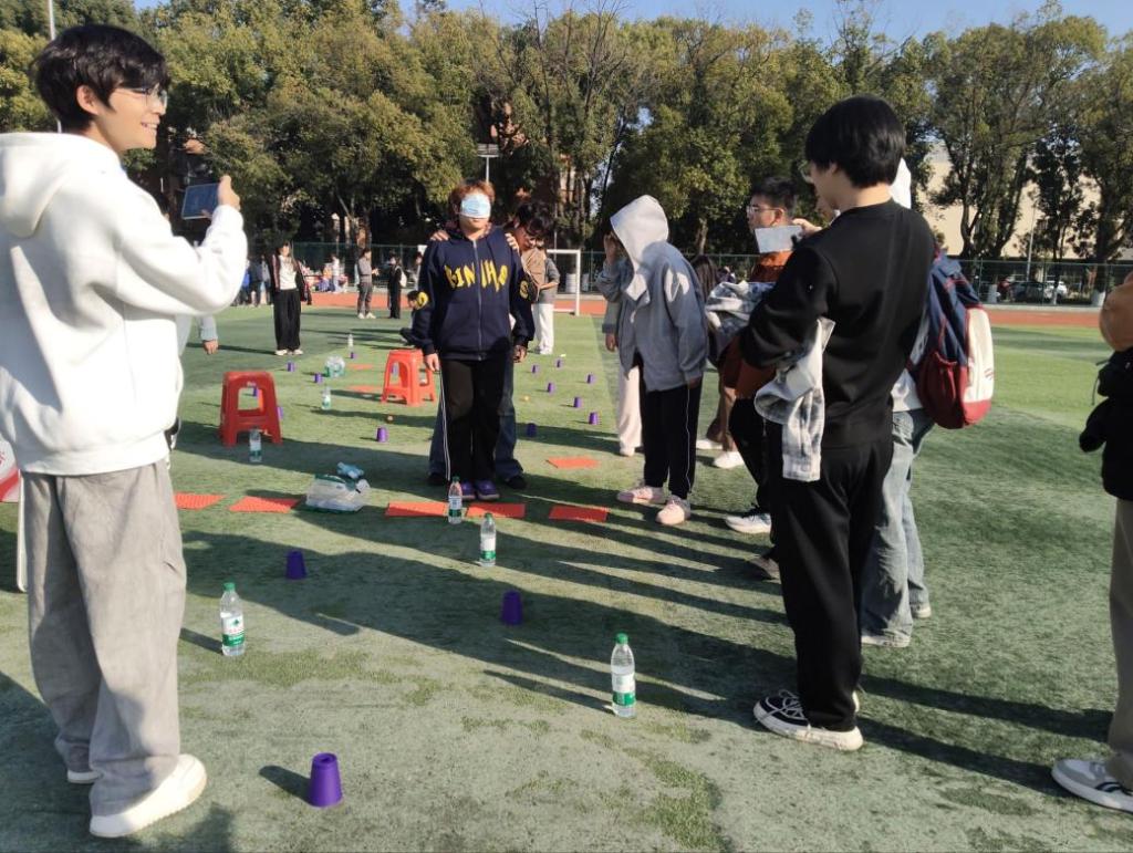 团体赛中,多人多足项目里,队员们肩并肩、脚绑脚,在默契配合中稳步前行,步伐整齐划一;盲人引导、气球大作战、同心协力等项目则各具特色,既有对团队协作的考验,也充满了欢声笑语,让大家在竞技中收获了友谊与信任。拔河项目的较量尤为激烈,各班参赛队伍紧握麻绳,脚蹬实地,在“一二、一二”的整齐呐喊中奋力后拉,绳索上的红绸来回移动,牵动着全场观众的心弦。