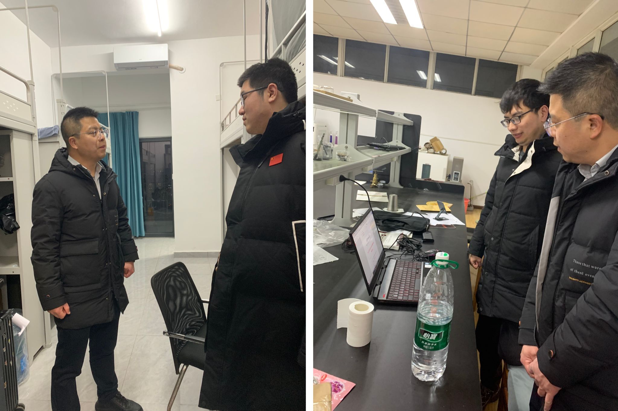 在西校区一年级自习室,院长赖璐、党委副书记杨会军与班主任鼓励新生尽快适应学习节奏,打好专业基础,养成良好学习习惯。党委书记王丽在女生寝室与毕业班学生深入交流,详细了解考研进展与求职情况,鼓励考研同学认真备战复试,指导求职同学把握春招机会,主动参与专场招聘会,提升求职竞争力。副院长吴爱斌、院长助理黄河走访男生寝室,着重了解了同学们新学期的精神风貌和学习状态,了解毕业生考研初试与就业情况;副院长谷惠文与研究生辅导员深入研究生宿舍和实验室,了解毕业生论文进度和求职进展情况,叮嘱研究生们遵守实验室安全规范,注意劳逸结合,保持身心健康。