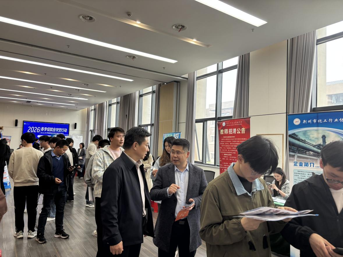 2026届毕业生春季校园供需见面会在东校区四食堂三楼成功举办。党委常委、党委组织部部长、党委统战部部长李应军、就业工作处处长徐波莅临现场指导工作,江南体育